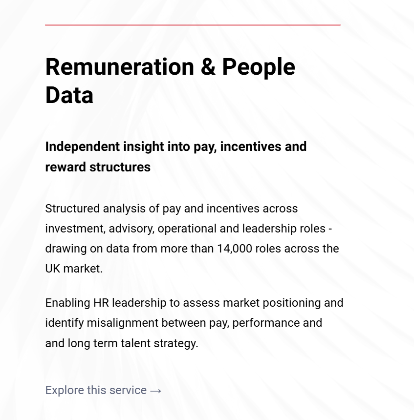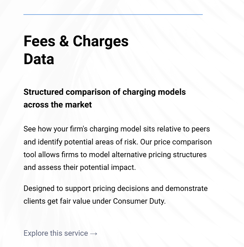 Built on proprietary datasets covering the majority of the UK wealth management market, combining operational, remuneration and charges data. The depth and consistency of data enables robust peer comparison and supports evidence-based strategic decision-making at firm and board level.
